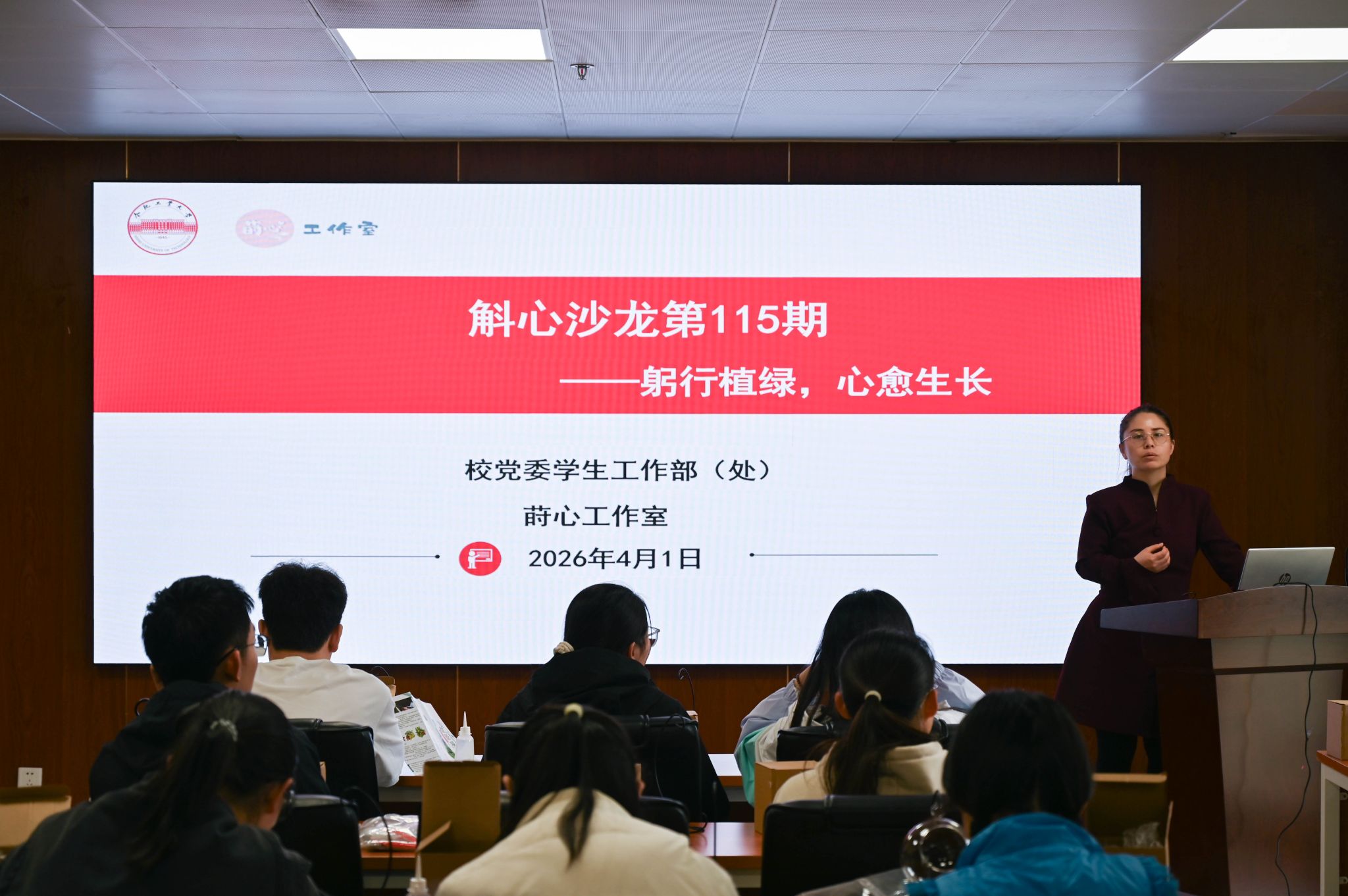 4月1日下午,由食品与生物工程学院、校党委学生工作部(处)莳心工作室承办的第115期“斛心沙龙”在翡翠湖校区食品与生物工程学院大楼206室开展。本次活动以“躬行植绿,心愈生长”为主题,由学院大学生发展辅导中心主任努尔比耶姆担任领导者,30名本科生参与。