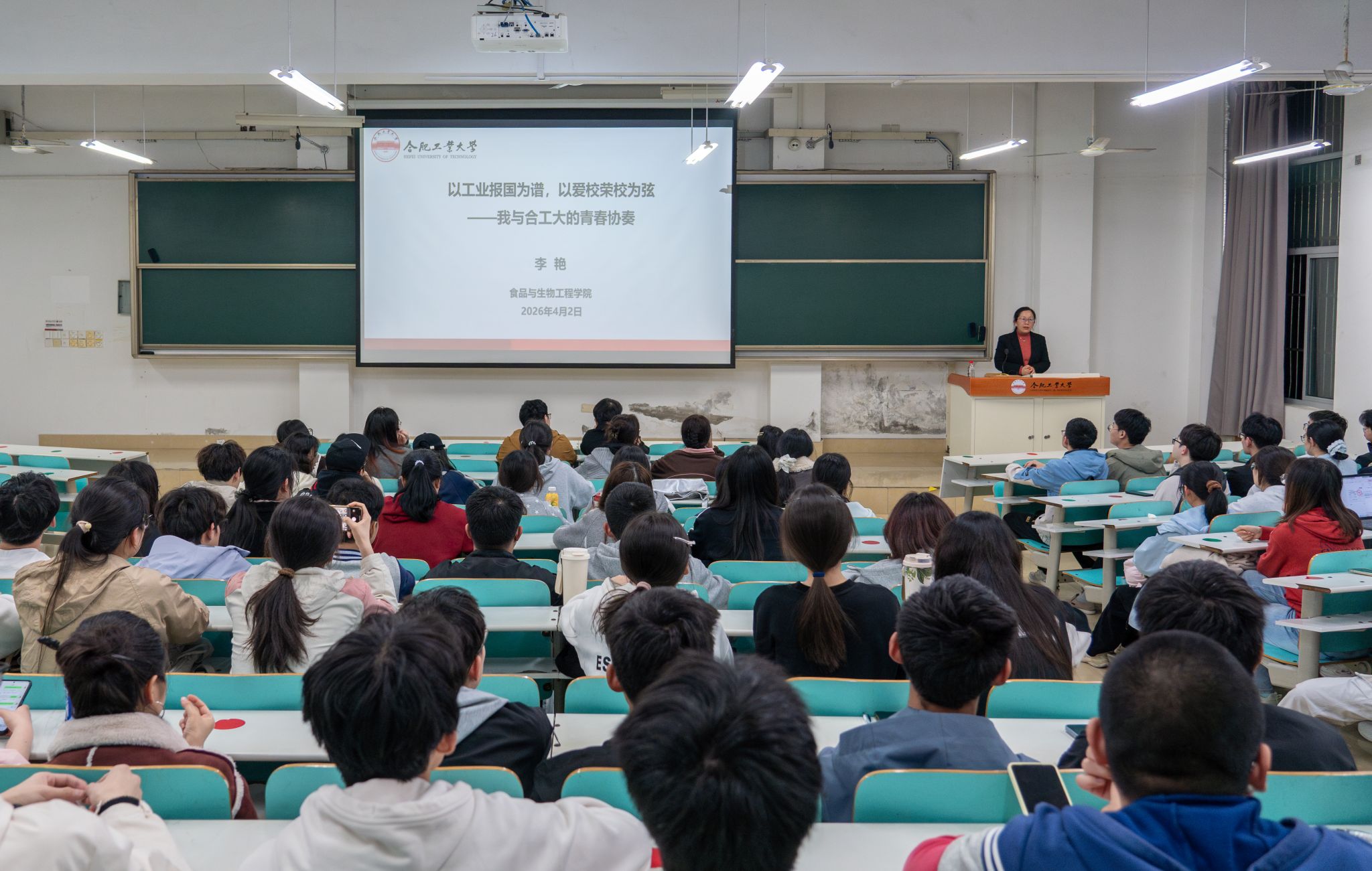 为深入落实青年团员思想引领工作,引导广大学生坚定理想信念、厚植家国情怀,4月2日晚,食品与生物工程学院在翡翠湖校区举办了“工业强国”主题思政课。学院党委副书记兼纪委书记李艳以《以工业报国为谱,以爱校荣校为弦——我与合工大的青春协奏》为题作专题报告,学院150余名学生到场聆听。