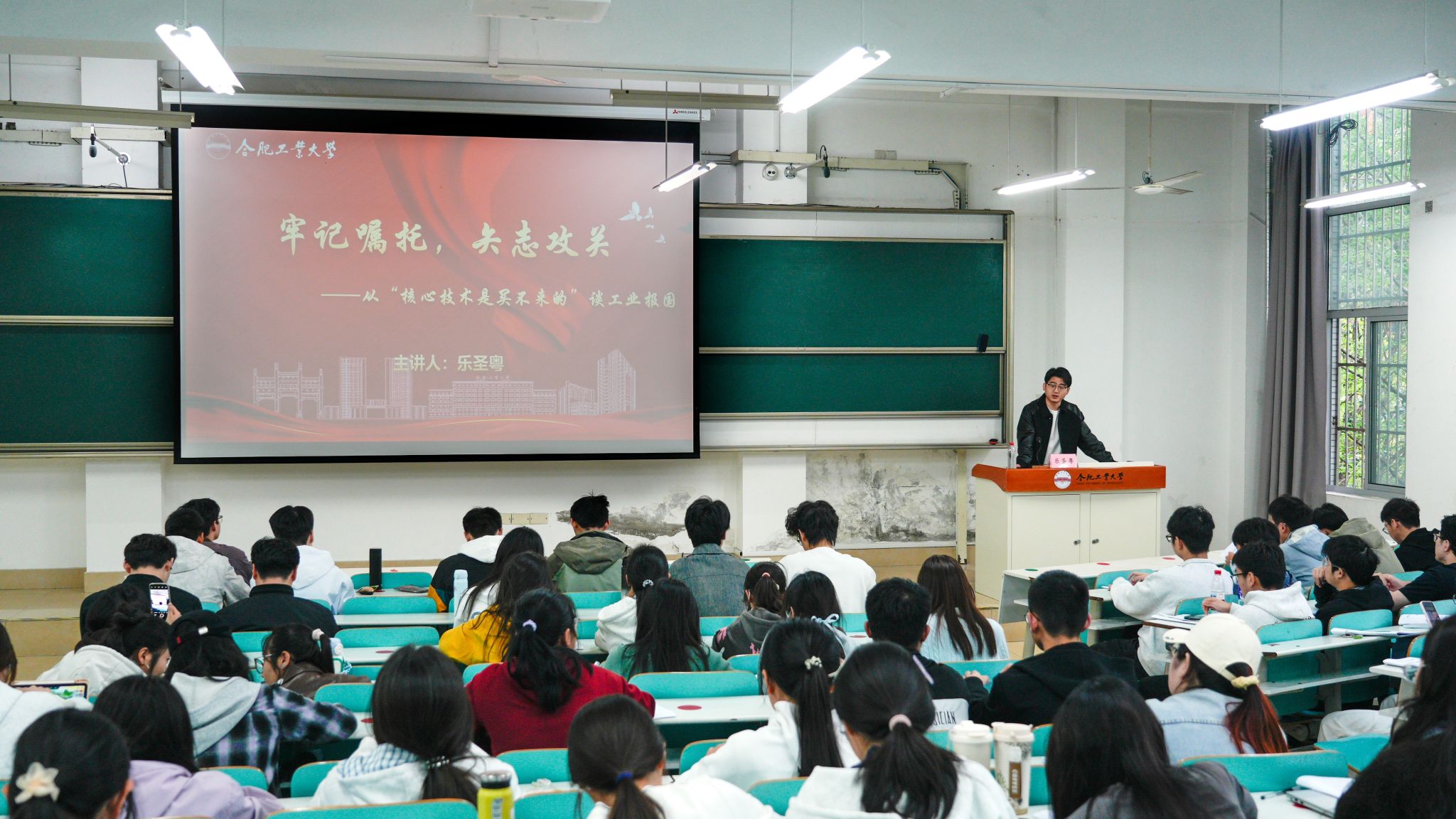 为引导青年学子将青春理想融入工业报国征程,4月11日,食品与生物工程学院在翠一教201室举行主题思政课。乐圣粤老师以“牢记嘱托,矢志攻关——从‘核心技术是买不来的’谈工业报国”为题讲授,150余名学生到场聆听。