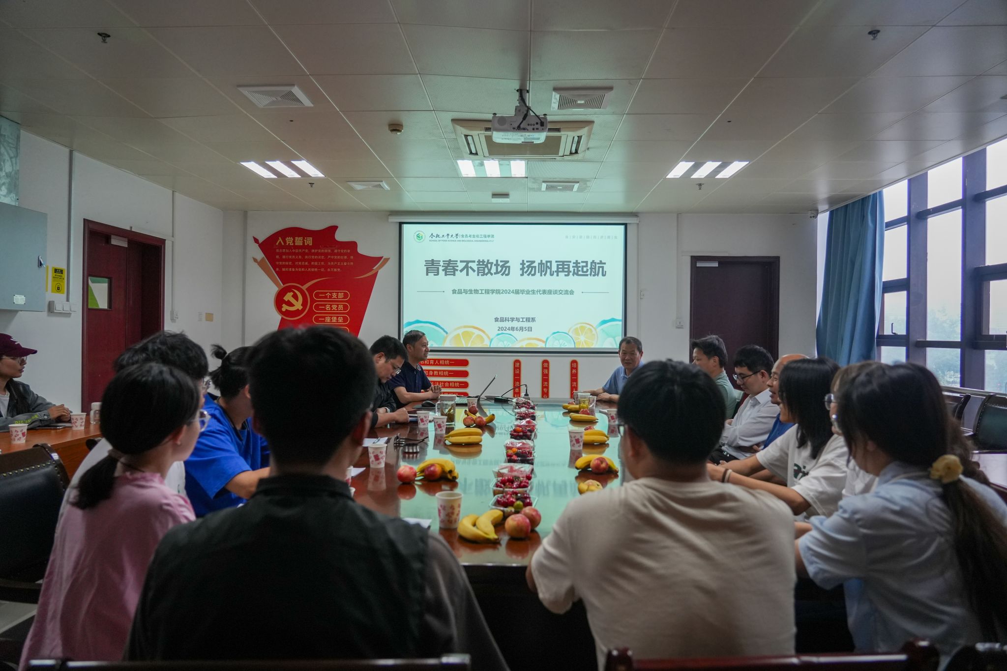 为贯彻落实立德树人根本任务,进一步做好毕业生的教育管理和服务工作,增强爱党爱国爱校意识,6月4日至5日,食品与生物工程学院举办“青春不散场,扬帆再起航”师生茶话会。院党委书记陈树海、党委副书记兼纪委书记李艳、各系教师代表及2024届毕业生代表参加座谈,倾听成长感悟,送上毕业祝福,共话发展愿景。