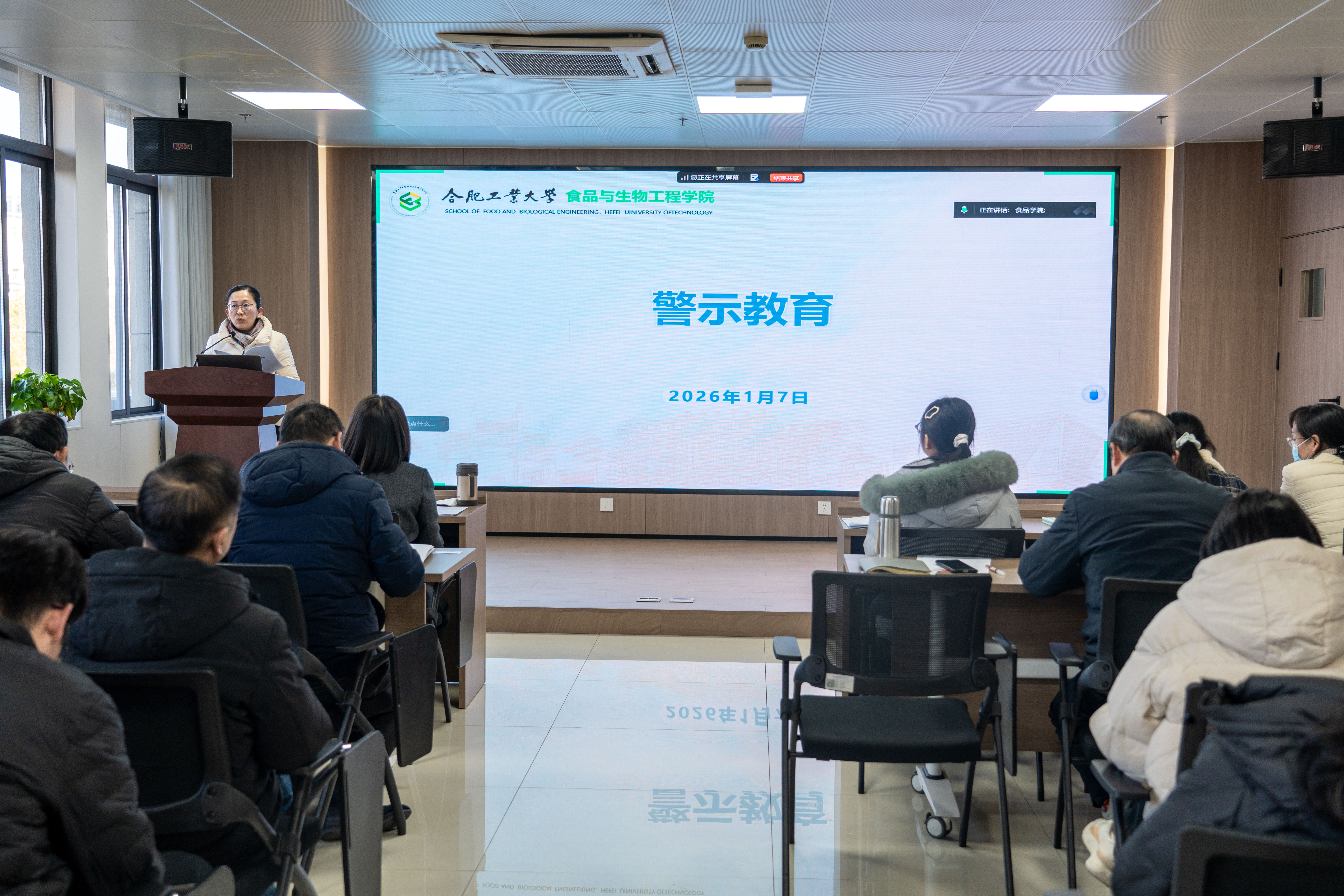 1月7日,食品与生物工程学院在306会议室召开全院教职工大会,学院党委副书记兼纪委书记李艳面向全体教职工开展专题警示教育。