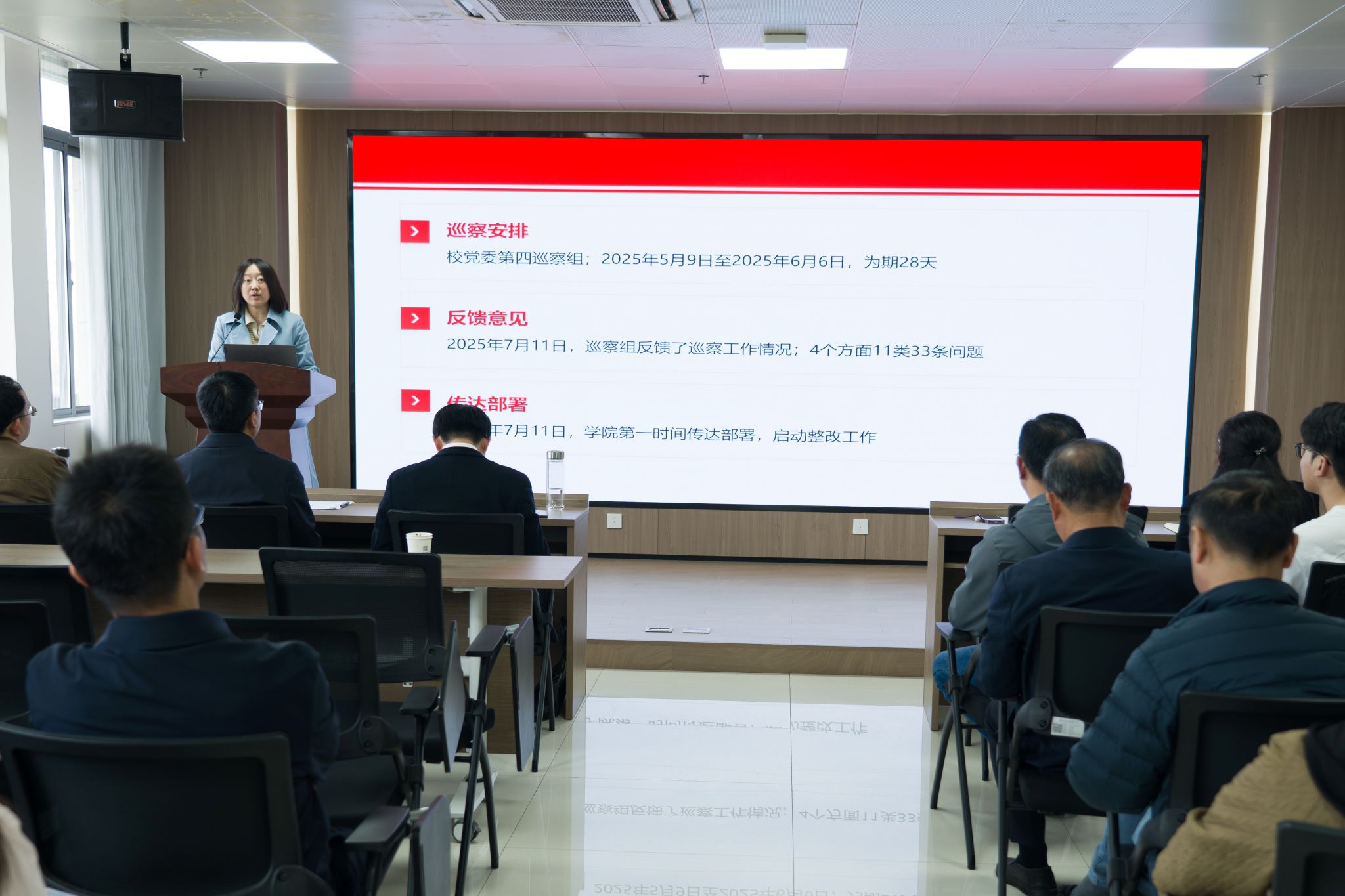 党委书记孙彩霞对党委校内巡察学院整改落实情况进行了通报。她强调,要以巡促改、以巡促建、以巡促治,将巡察成果转化为推动高质量发展的内生动力,切实推动学院各项工作迈上新台阶、取得新突破。