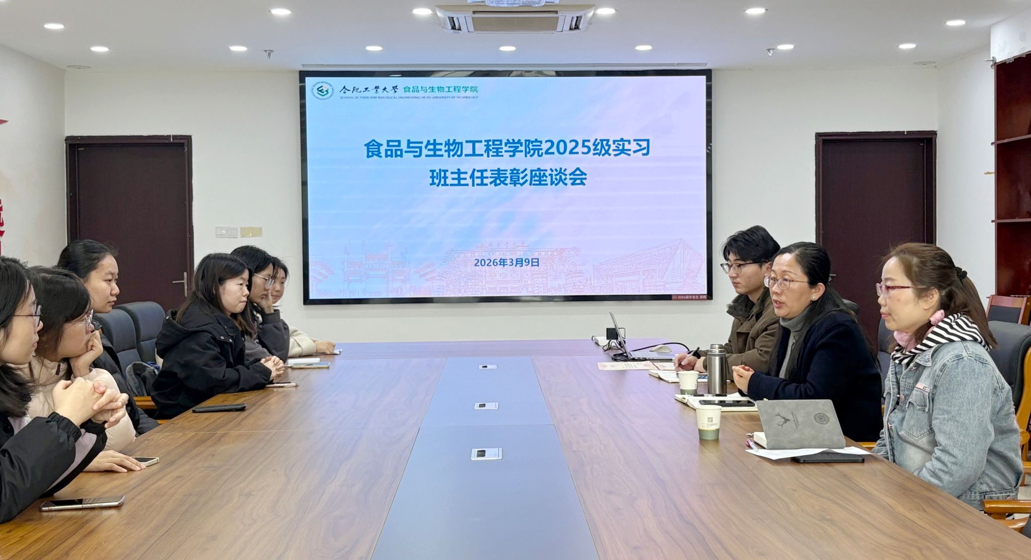 3月9日上午,食品与生物工程学院在学院206办公室召开2025级实习班主任表彰座谈会。学院党委副书记兼纪委书记李艳、马克思主义学院副教授郭芙蓉、2025级辅导员乐圣粤及2025级实习班主任参加会议。会上,实习班主任们逐一分享上岗以来的工作感悟与收获。大家结合班级管理实际,围绕学风建设、学业指导、谈心谈话等主题展开交流,分享了从“学生”到“老师”角色转变中的成长与思考。随后,郭芙蓉从思政育人角度发言,她回顾了同学...