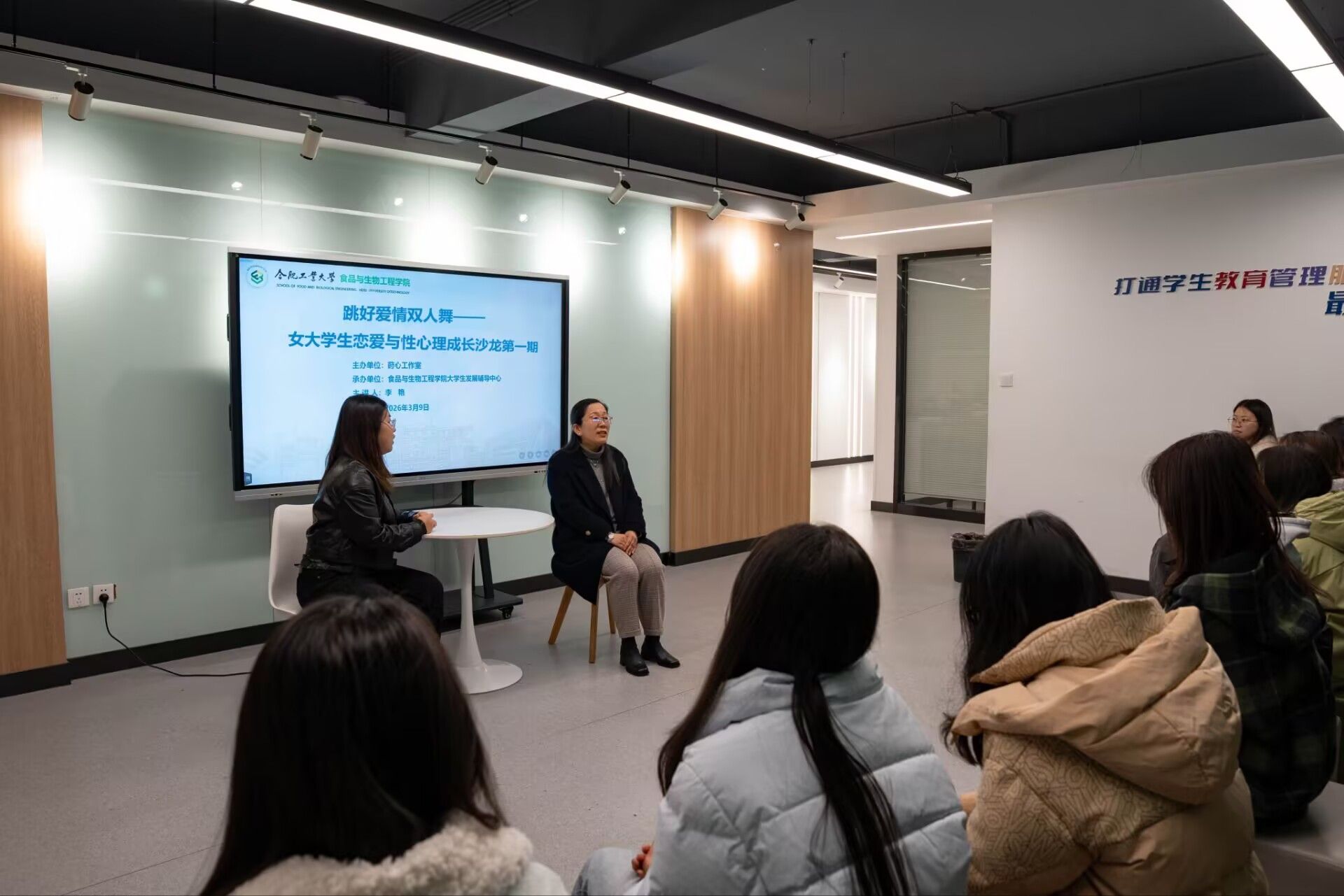 3月9日晚上19:00,校党委学生工作部(处)莳心工作室、食品与生物工程学院大学生发展辅导中心在翡翠湖校区二号楼学生社区沙龙空间,举办首期女大学生恋爱与性心理成长沙龙——跳好爱情双人舞。学院党委副书记兼纪委书记、中国心理学会注册心理师、国家二级心理咨询师李艳副教授担任嘉宾,30余名学生参与本次活动。首先,李艳就“如何在大学生活中开启一段恋爱”这一问题娓娓道来,她强调人与人之间长久的吸引依靠的是内在品质,...