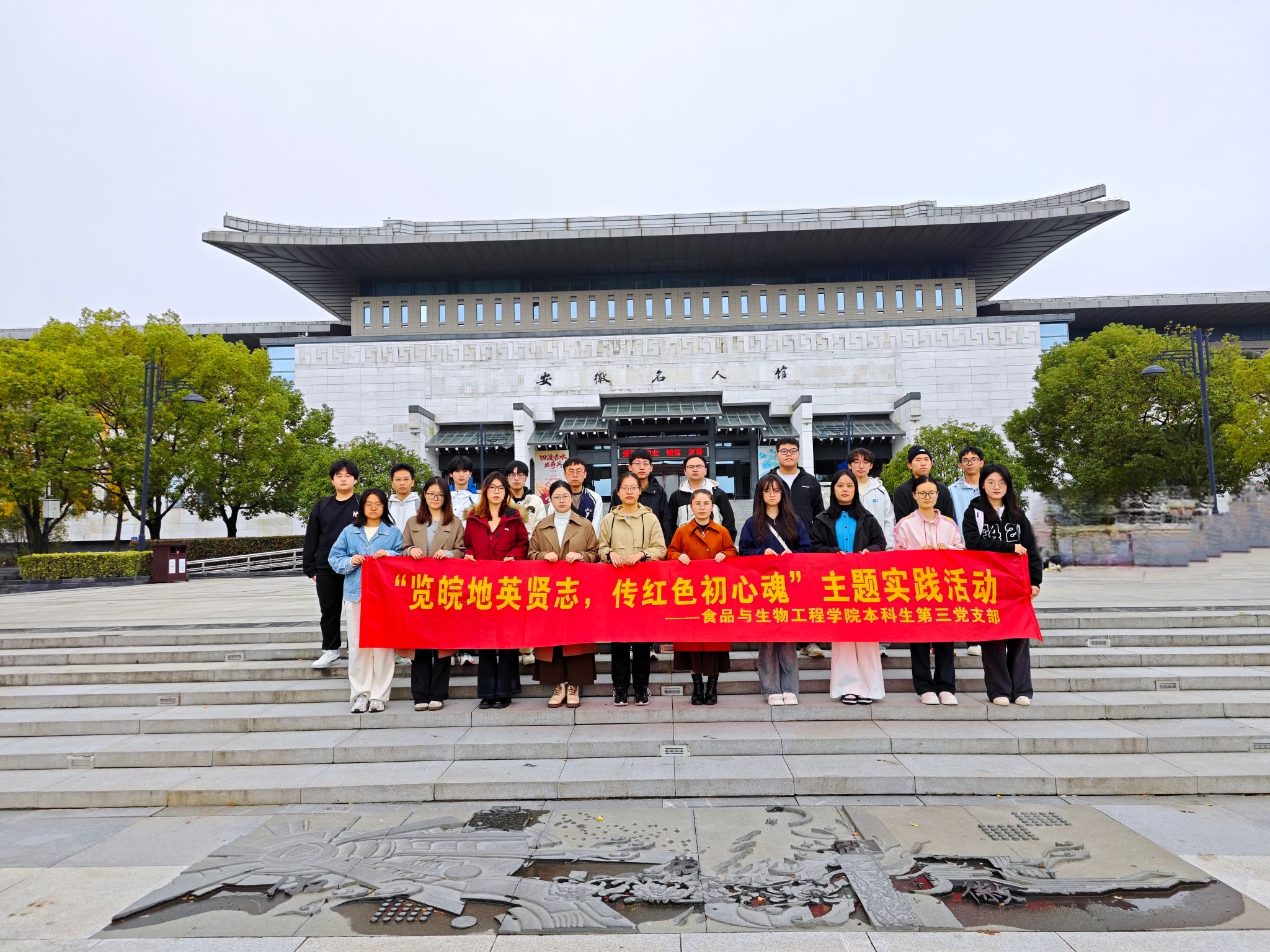 为传承红色基因,深化思想政治教育,引导青年党员厚植家国情怀,11月8日,食品与生物工程学院本科生第三党支部组织党员和发展对象赴安徽省名人馆,开展“览皖地英贤志,传红色初心魂”主题实践活动,在实地探访中感悟英贤精神,汲取奋进力量。