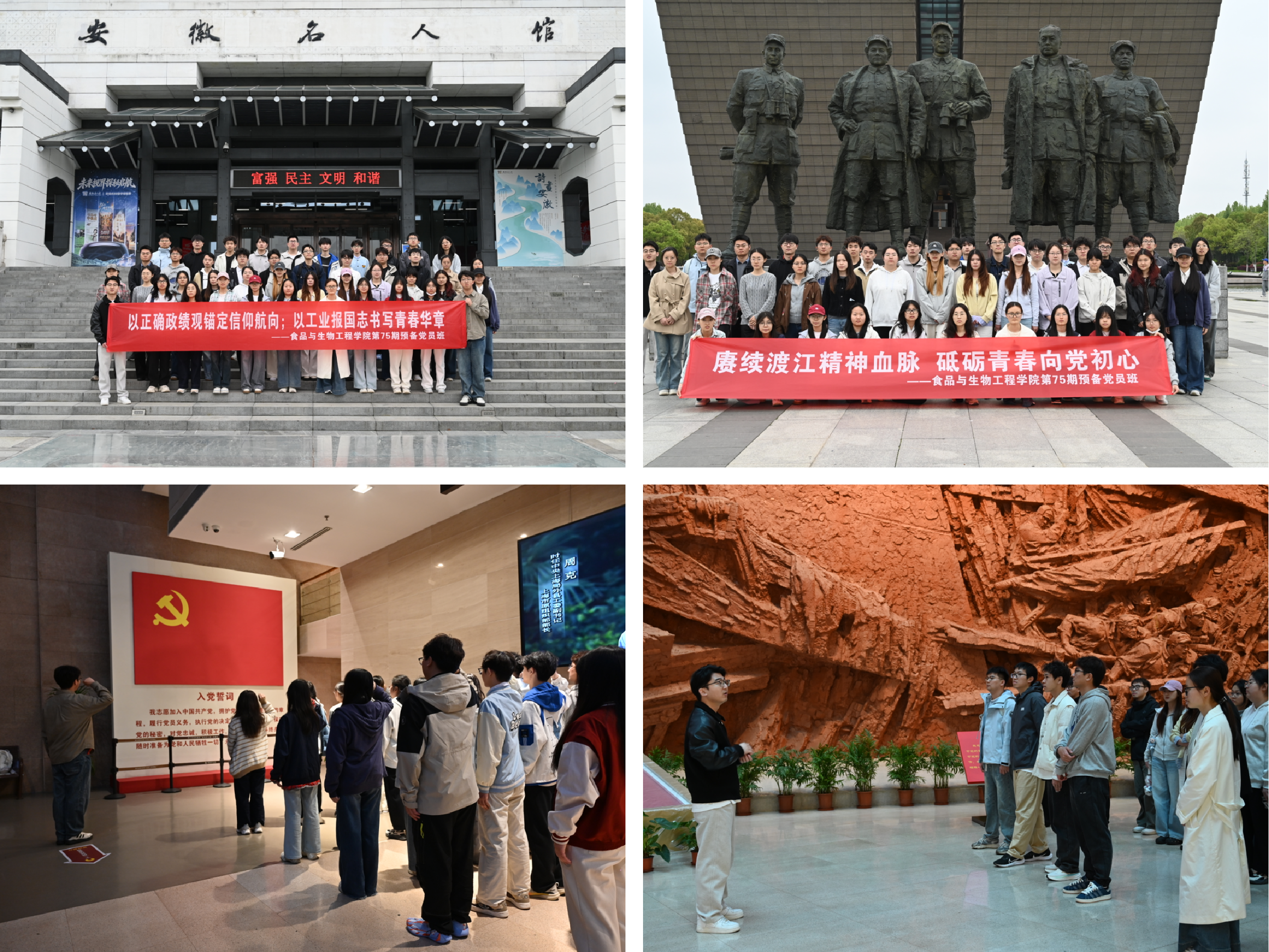 为强化预备党员党性修养,厚植爱党爱国情怀,4月12日,食品与生物工程学院第75期预备党员班全体学员前往安徽省名人馆与渡江战役纪念馆,开展以“学政绩观、承渡江魂、做报国者”为主题的“场馆里的思政课”。