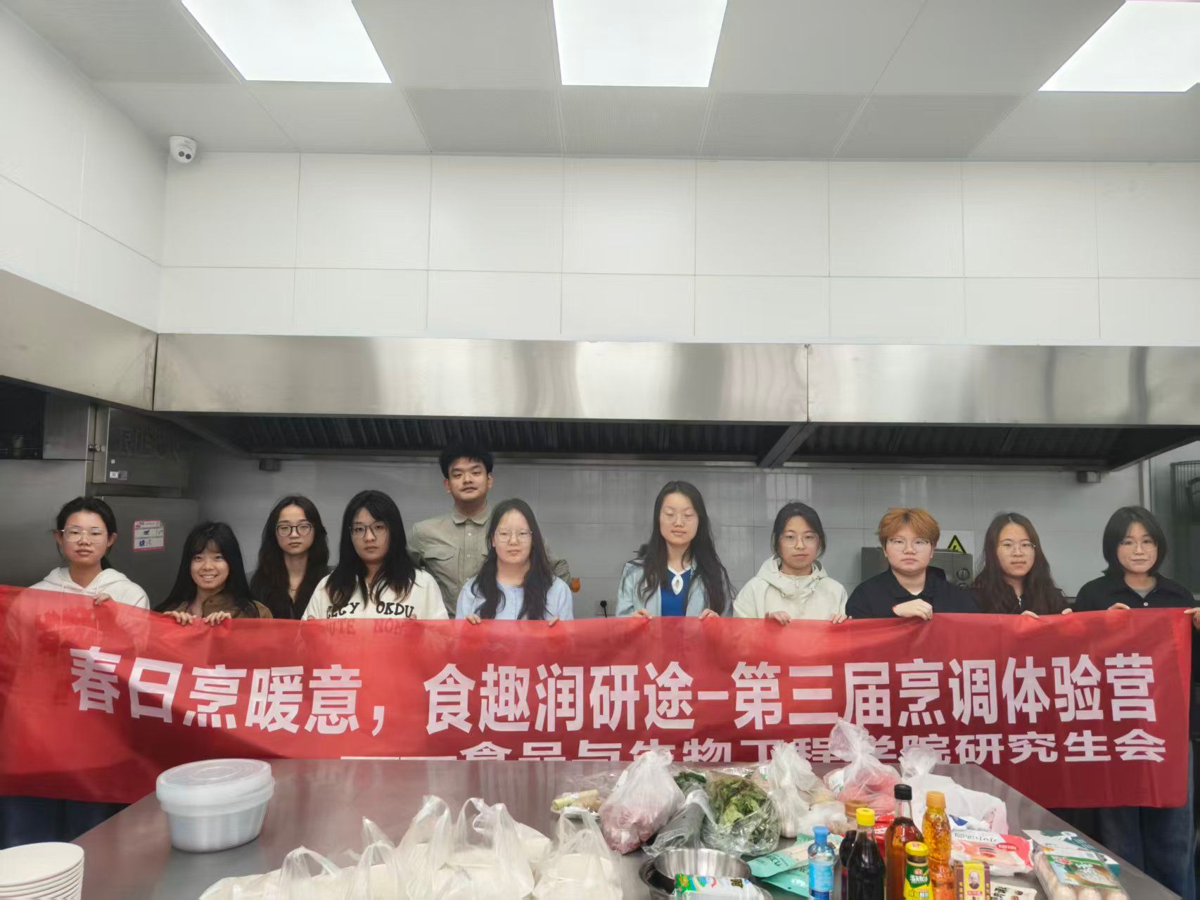 4月11日上午,食品与生物工程学院研究生会在翡翠湖校区一号实验楼预制菜加工实验室,举办第三届“春日烹暖意,食趣润研途”烹调技能拓展体验营,20余名研究生相聚一堂,以食会友、以践促学。