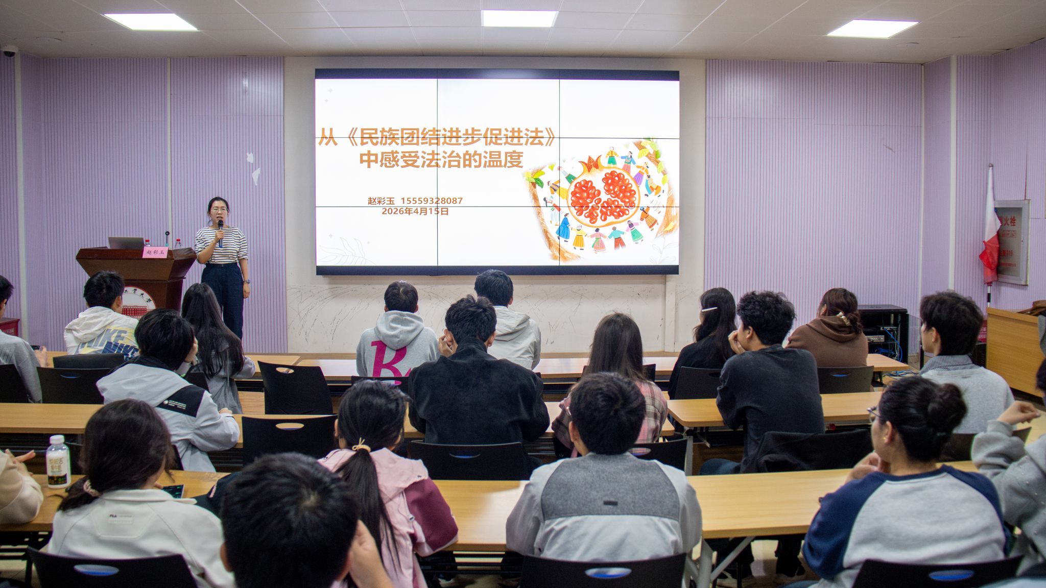 讲座中,赵彩玉围绕《民族团结进步促进法》,结合自身工作经验,聚焦国家安全、财产金融安全、校园行为规范等主题,用通俗的语言解读法律条文,结合典型案例警示学生,引导树立法治底线思维,防范违法违纪行为。