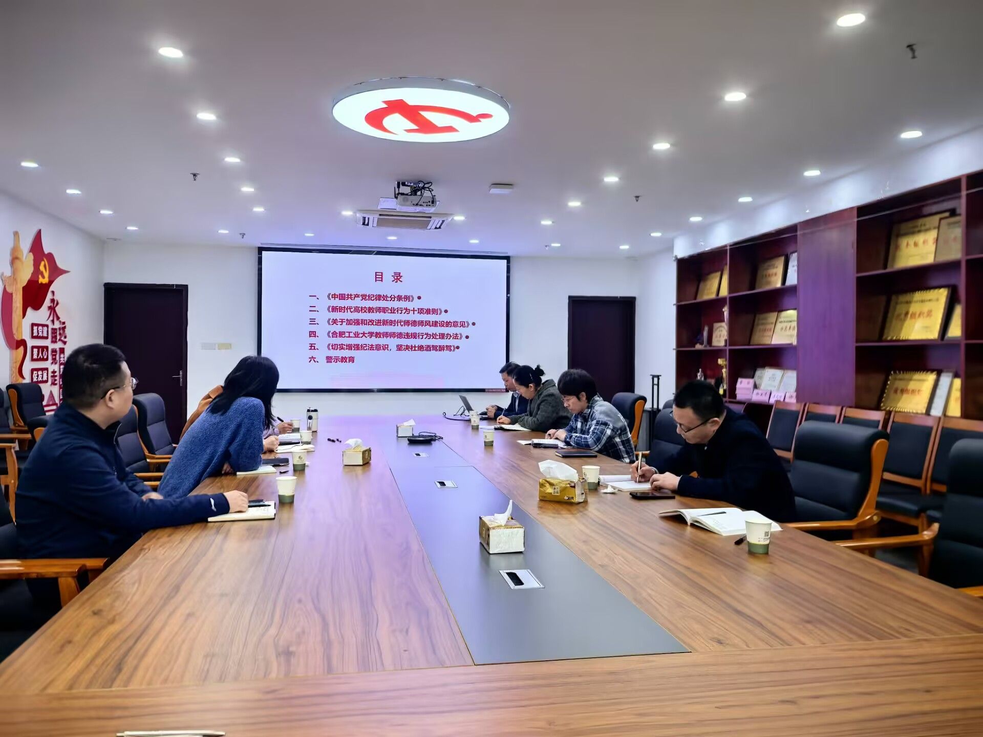 随后,学院纪委委员朱慧霞就《合肥工业大学教师师德违规行为处理办法》及《切实增强纪法意识,坚决杜绝酒驾醉驾》相关内容进行领学,进一步强化教师的纪法观念和底线意识。