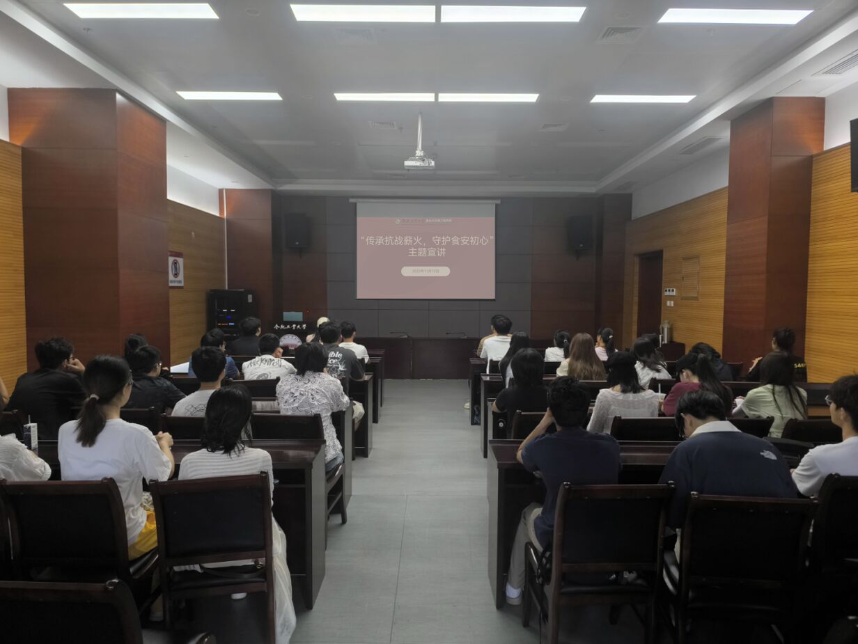 为传承伟大抗战精神,强化专业使命教育,11月10日,食品与生物工程学院在食品楼206会议室举行“传承抗战薪火,守护食安初心”主题宣讲活动。党校第74期预备党员班全体学员参加学习。张正熙同学结合食品专业特色,从历史与现实相贯通的视角,生动讲述了抗战时期粮食保障与食品安全的历史篇章。宣讲以晋察冀边区“救国公粮”制度的建立为例,展现“天下兴亡、匹夫有责”的爱国精神;通过杨靖宇将军胃中仅存枯草树皮、聂荣臻司令员...