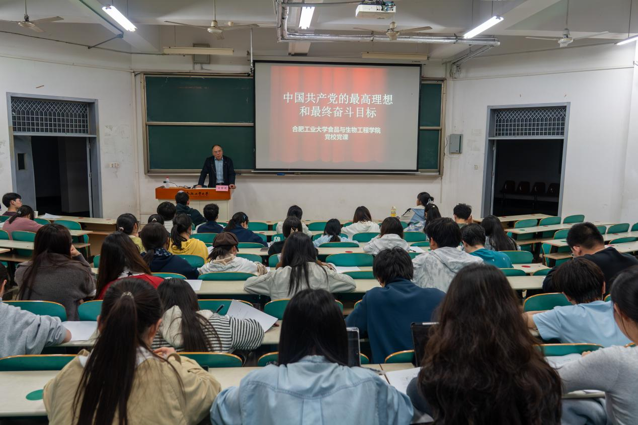 为筑牢入党积极分子理想信念之基,引导青年学子深刻领悟中国共产党的初心使命,4月10日晚19:00,食品与生物工程学院第75期入党积极分子班第三次集中学习在翡翠湖校区翠九教101教室如期举行。合肥工业大学副教授、食品与生物工程学院关工委常务副主任宋黎明老师为全体入党积极分子讲授以“中国共产党的最高理想和最终奋斗目标”为主题的专题党课。宋黎明以“理论铸魂—历史明证—使命践行”为主线,围绕“实现共产主义”核心,系...