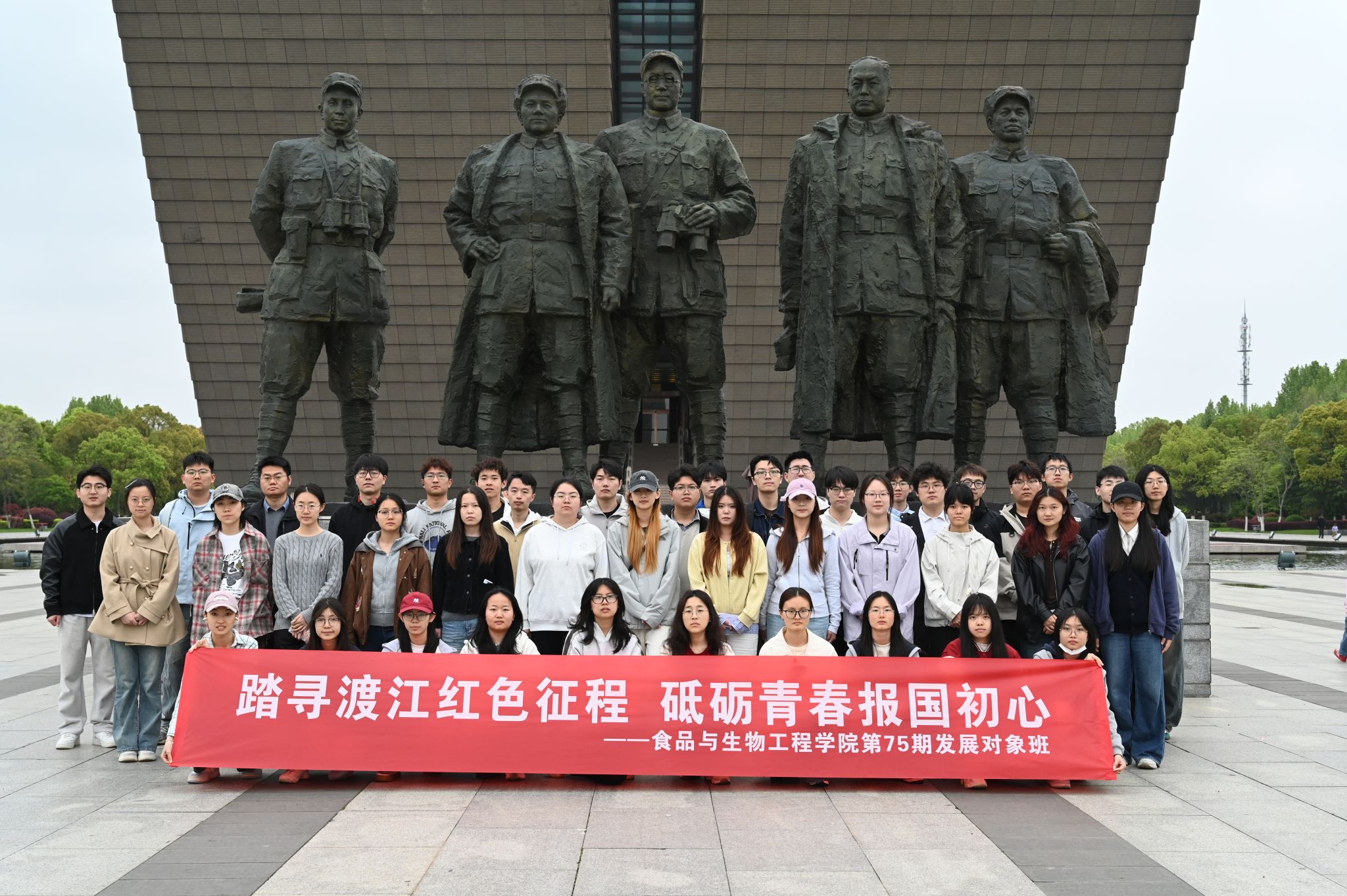 为强化预备党员党性修养,厚植爱党爱国情怀,4月12日,食品与生物工程学院第75期预备党员班全体学员前往安徽省名人馆与渡江战役纪念馆,开展以“学政绩观、承渡江魂、做报国者”为主题的“场馆里的思政课”。在安徽省名人馆,学员们依次参观各展厅,从文治武功的先贤志士,到实业救国的近代英才,再到敢为人先的时代楷模,深刻感悟安徽儿女心系家国、实干担当的精神风骨。大家认真聆听讲解,领会正确政绩观的时代内涵,感悟老一...
