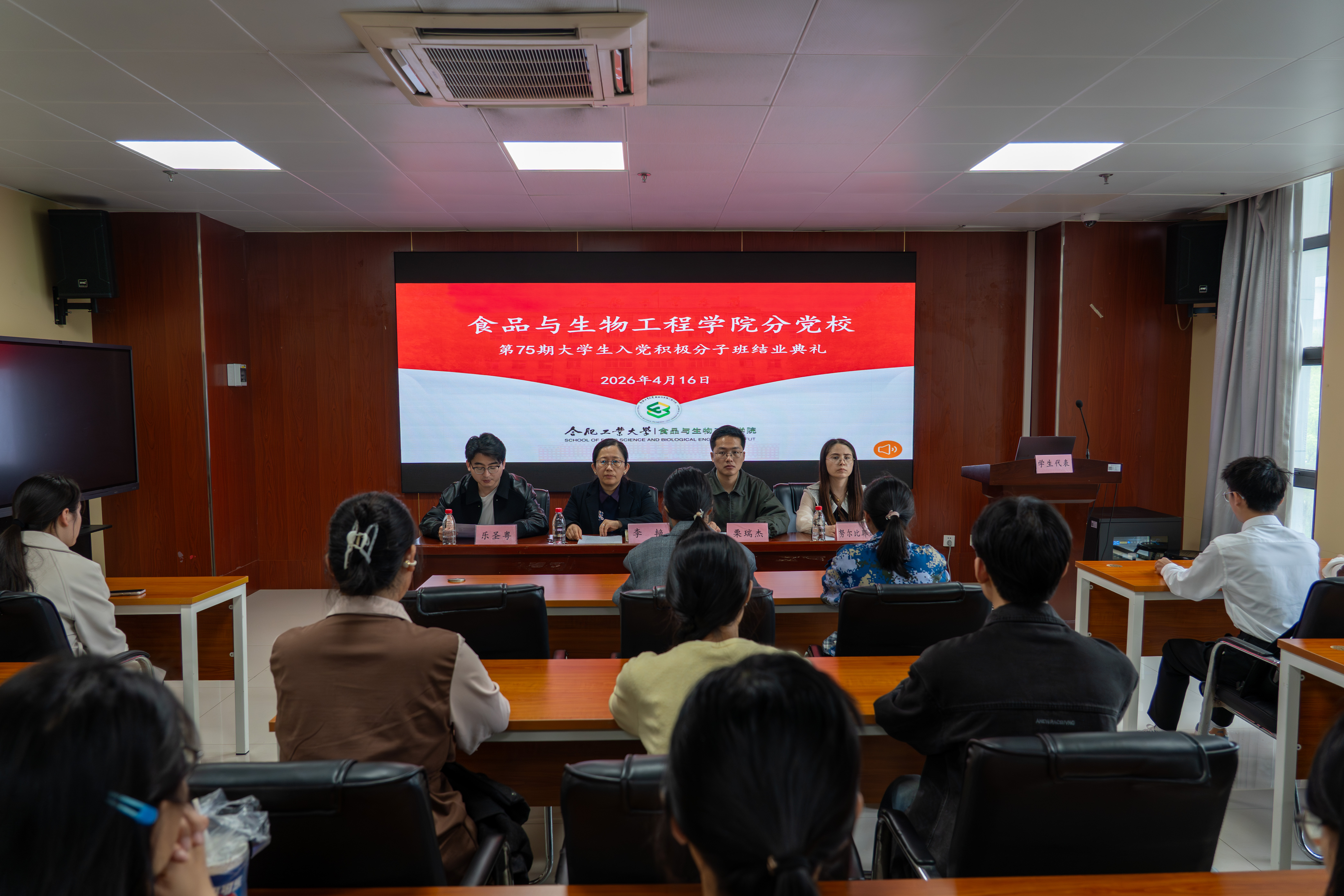 4月16日,食品与生物工程学院在翡翠湖校区食生楼206会议室举行第75期大学生入党积极分子培训班结业典礼,学院相关负责人以及全体学员参加了此次活动。入党积极分子班班主任努尔比耶姆主持典礼。结业典礼在庄严的国歌声中拉开序幕,研究生辅导员栗瑞杰宣读《关于食品与生物工程学院分党校第75期大学生入党积极分子班结业的决定》,本科2025级辅导员乐圣粤宣读党校优秀学员名单,在场领导老师跟优秀学员合影留念。随后,学员代表...